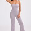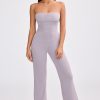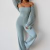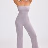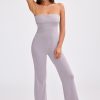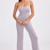 Bandeau Kick Flare Chunky Knit Jumpsuit in Dusty Lavender