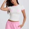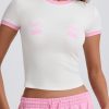 Keep it cute. Designed to be styled with joggers and flares from the collection, this T-shirt is crafted from premium, breathable and super soft cotton jersey and cut to a cropped silhouette, inspired by nostalgic baby tees. It’s framed with contrast trims at the crew neck and sleeves, and elevated with custom-designed bow and cherry graphics at the chest.