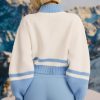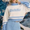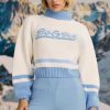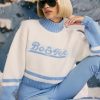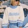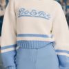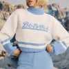 Elevate your winter wardrobe. Designed to keep you cosy and stylish on winter days, this chunky-knit jumper is spun with a touch of mohair and wool for enhanced warmth. The cropped silhouette is framed with dropped shoulders that create a relaxed look and a high mock neck. It’s decorated with a jacquard Bo&Tee logo and contrasting stripes, inspired by classic ski styles.