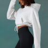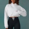Cropped Drawstring Hooded Sweatshirt in Ice Grey