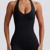 Designed for workout sessions and doubling as the perfect everyday styling piece, this tank top combines comfort and functionality. It’s crafted from our seamless Define Luxe fabric with breathable and moisture-wicking properties for all-day comfort, and cut to a universally flattering halterneck silhouette with underbust contouring and an internal shelf bra for light support.