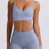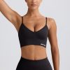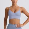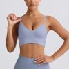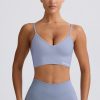 Streamlined support. Slinky soft and engineered for performance, this V-neck sports bra is crafted from our signature Define Luxe fabric with a breathable, seamless knit construction and moisture-wicking properties for enhanced comfort during any workout. It features adjustable straps for a custom fit and a supportive micro-rib underband.