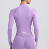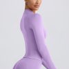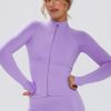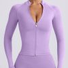 Functional comfort. Made from our breathable, moisture-wicking and lightweight Define Luxe fabric, this jacket is perfect for everyday workouts, outdoor activities and running errands. Designed for a second-skin fit, it features underbust contouring and compressive ribbed panels along each side, creating a sculpted look. It has a high collared neckline for extra protection against the elements and a signature logo at the back.