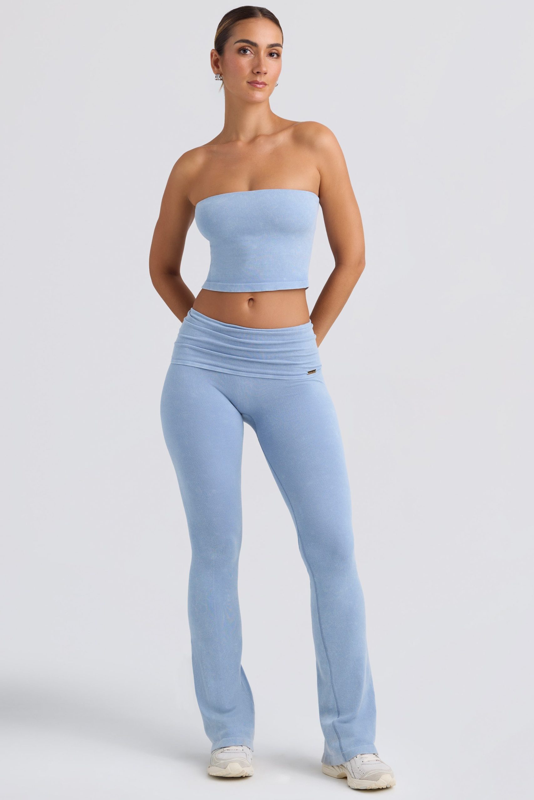 Soft layering staples for a smooth transition. Crafted from super soft Seamless Rib fabric, these trousers are cut to a flared silhouette that’s fitted around the thighs and features a double-layered foldover ruched waistband for custom styling. They’re complete with a subtle vintage-inspired acid wash and premium metal logo hardware at the back.