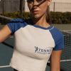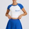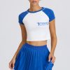 Serve on and off the court. Cut to a slightly cropped length, this baby tee is crafted from lightweight, soft and breathable interlock cotton to a fitted silhouette with a touch of stretch for enhanced comfort. Framed with a contrasting crew neckline and raglan short sleeves that cement the sporty inspiration, it’s complete with a statement graphic and slogan print at the chest.