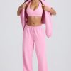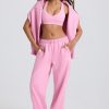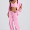 Mid-Rise Wide-Leg Joggers in Baby Pink