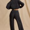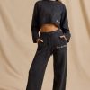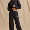 Mid-Rise Wide-Leg Joggers in Charcoal Marl