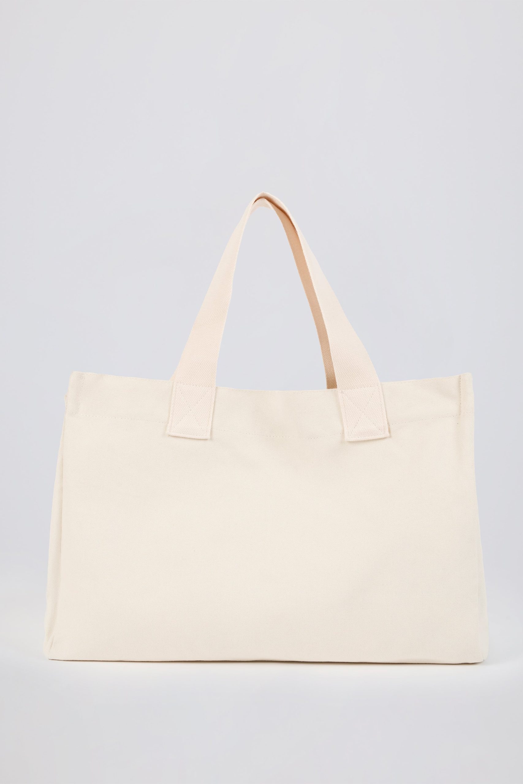 On-the-go essentials. Designed to carry everything you need on busy days, this oversized tote bag is crafted from durable canvas with two reinforced shoulder straps. It opens to a generously sized main compartment and is complete with custom-designed graphics at the front.