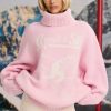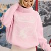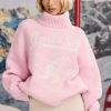 Alpine essentials, après approved. Ultra-cosy and soft, this chunky-knit jumper is spun with a touch of mohair and wool for enhanced warmth on winter getaways and chilly days. The oversized silhouette is tempered with a ribbed hem and cuffs, and framed with a ribbed turtleneck to lock in heat. It’s complete with a playful jacquard après-ski motif at the front.