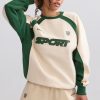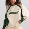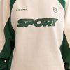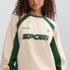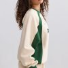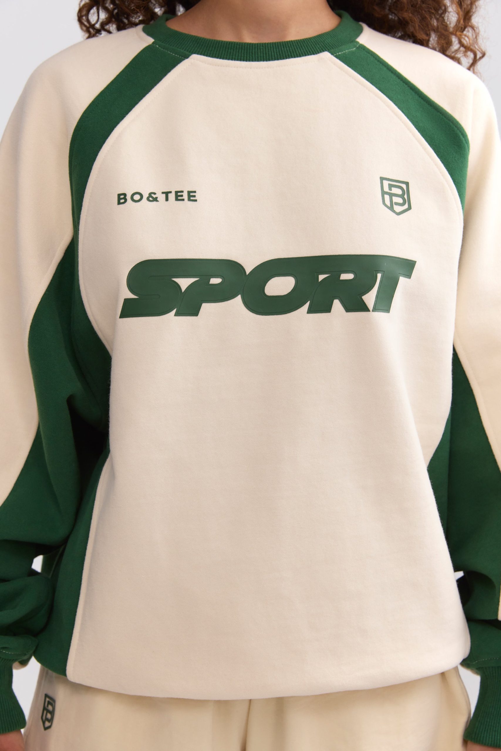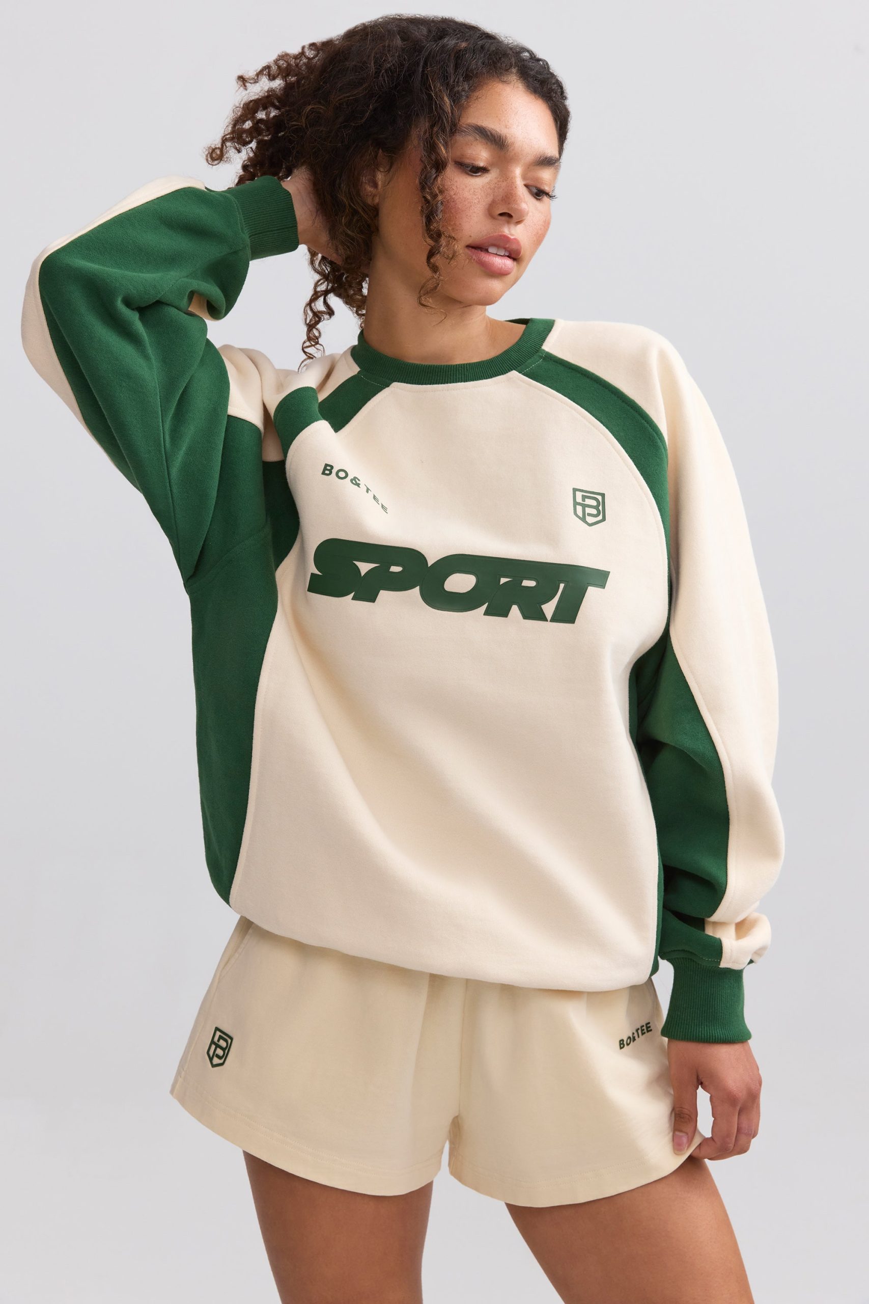 A nod to classic sportswear. Uplifted with contrasting colourblock panels, this sweatshirt is crafted from cosy brushed-back fleece to an oversized silhouette tempered with a ribbed hem and cuffs. It’s framed with a classic crew neck and finished with sporty graphics, including an embroidered Bo&Tee crest logo at the chest.