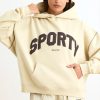 Your uniform for rest and recreation. Available in three muted shades, this washed hoodie is made from our 330gsm heavyweight custom-knit fabric with a super soft fleece inner for a cosy feel. It’s cut to a classic oversized fit with a kangaroo pocket and dropped shoulders for comfortable layering and features a graphic sporty slogan at the chest.
