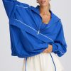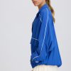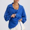 Lightweight coverage. The perfect layer for temperate days, this unlined track jacket is made from crisp woven taffeta that’s lightweight and breathable. Inspired by classic windbreakers, it features a quarter-zip fastening for variable coverage and is cut to an oversized silhouette, tempered by an elasticated hem and sleeves. It’s complete with sporty contrast trims and signature elements, including a woven Bo&Tee badge and a branded zip pull.