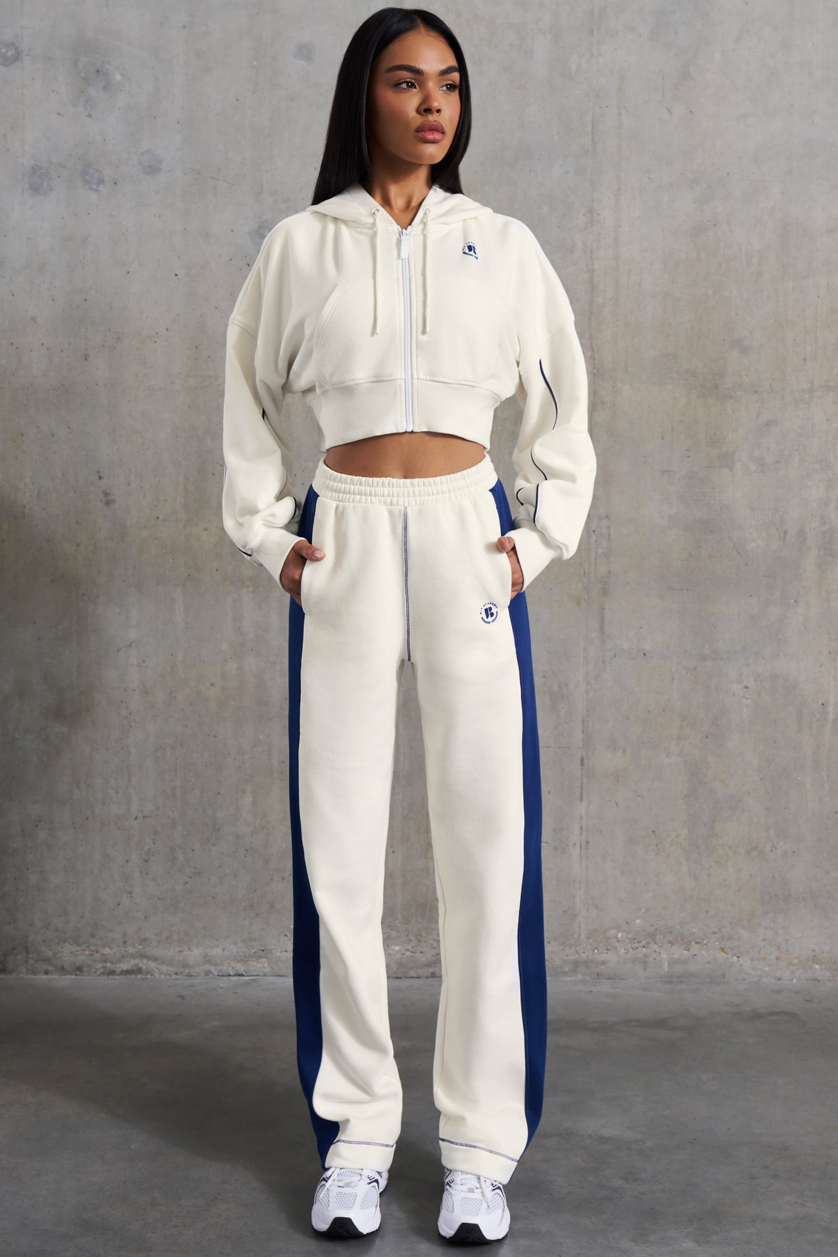 An academic-inspired athleisure style, the Elite wide leg sweatpants are crafted for ultimate comfort. Made from our premium 330gsm heavyweight, brushed cotton fabric that’s fleece lined for unbelievable comfort, the Elite sweatpants are a wide fit, straight leg design, complete with colour block side panelling and flocked branding at the thigh.