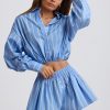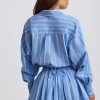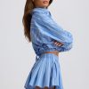 Pleated Cotton-Poplin Shorts in Blue Stripe