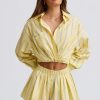 Pleated Cotton-Poplin Shorts in Yellow Stripe