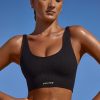 Plunge Neck Open Back FlexiRib Sports Bra in Black