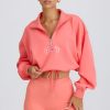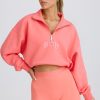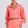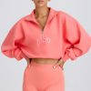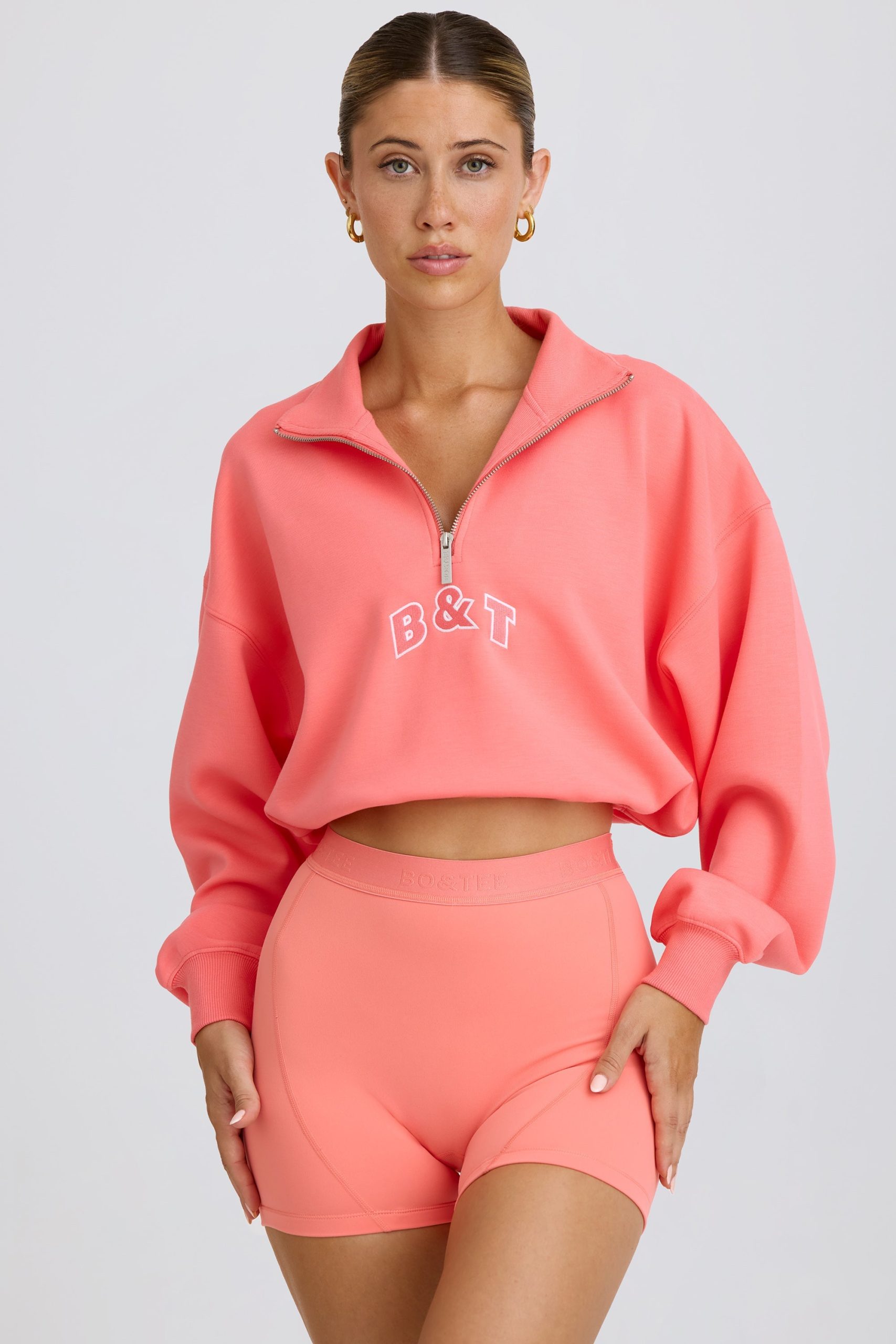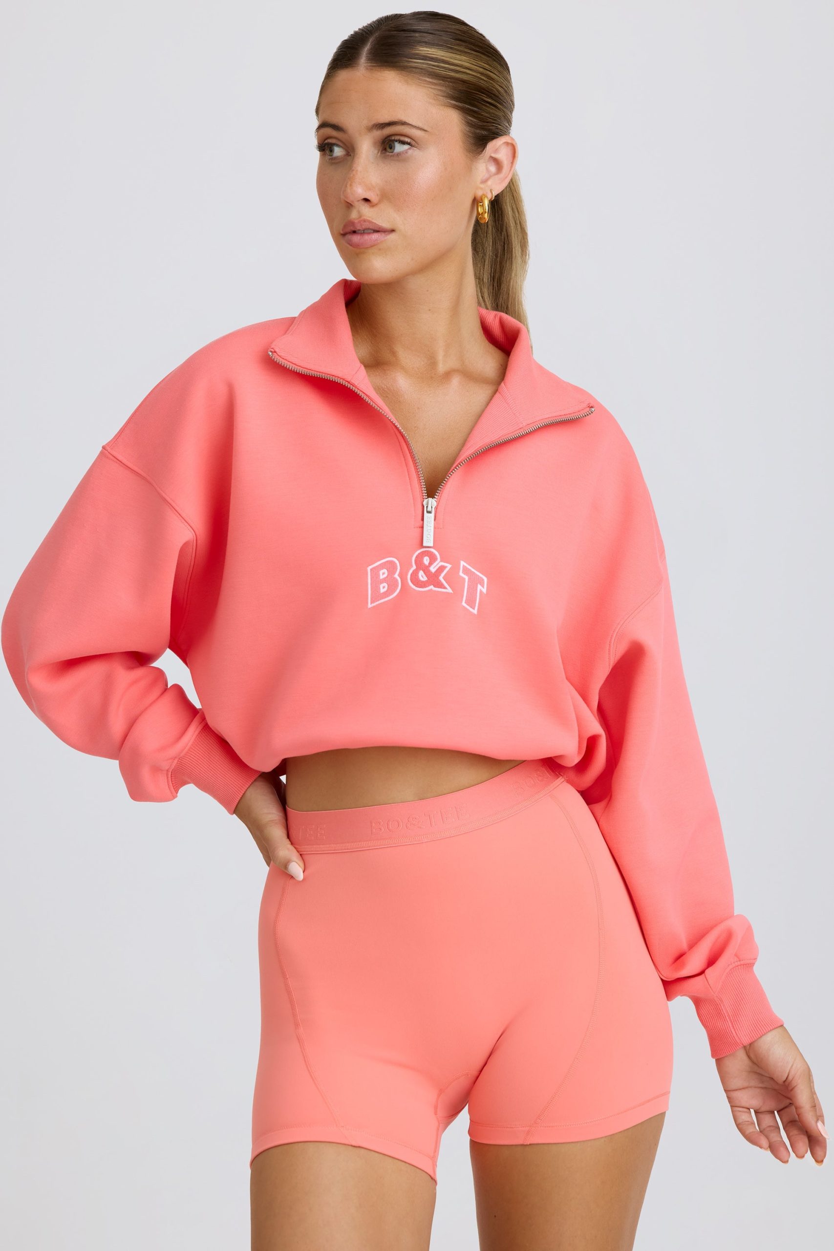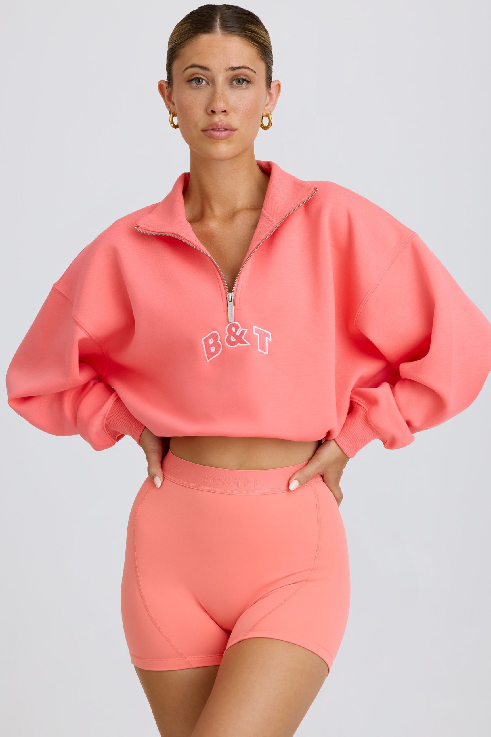 Designed with morning coffee runs and active afternoons in mind, this cropped sweatshirt is crafted from soft and slouchy scuba jersey with dropped shoulders and ribbed cuffs that enhance the laid-back look. It features an adjustable drawstring hem for custom styling, a quarter-zip fastening at the front and an embroidered Bo&Tee logo at the chest.
