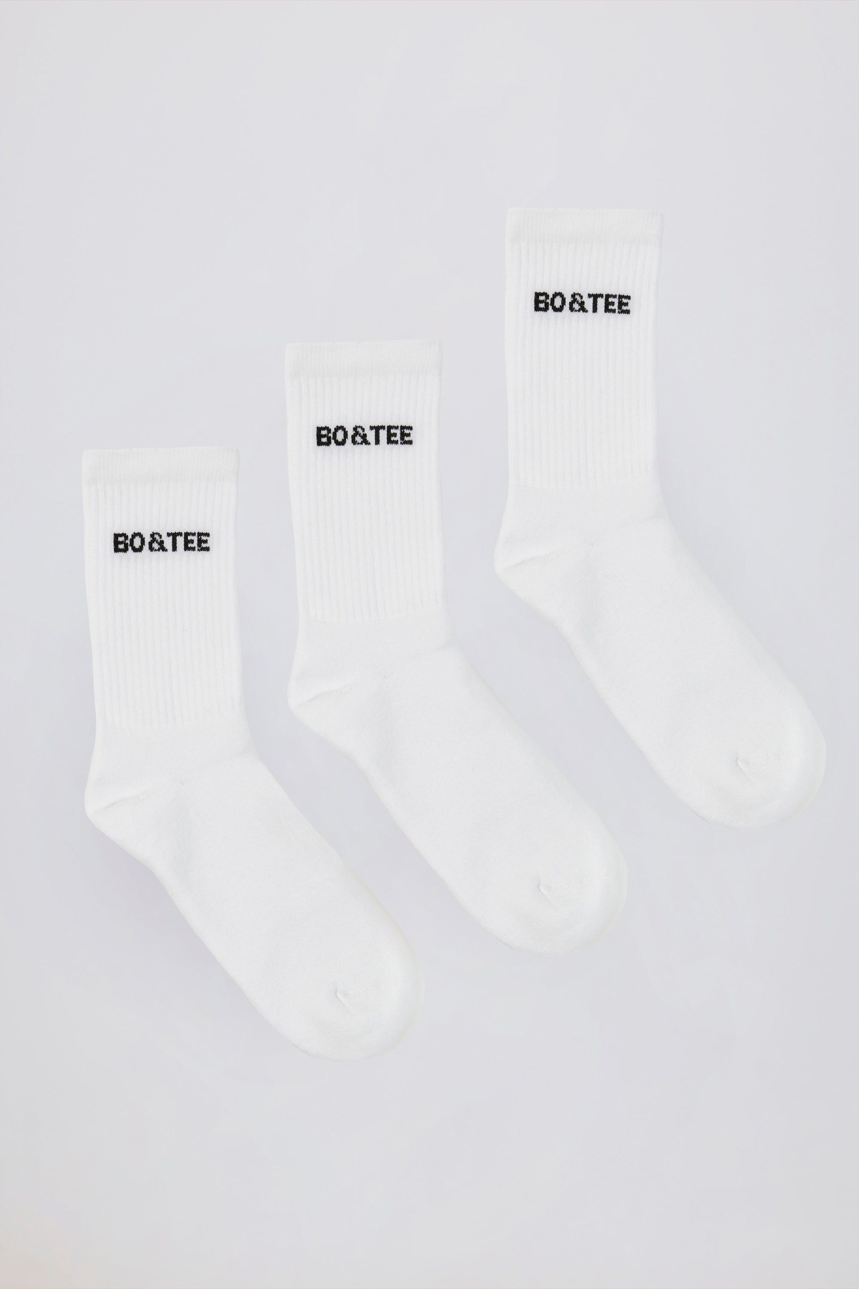 Ultimate everyday comfort. Crafted from a super soft and breathable cotton blend, these classic crew socks are perfect for all-day wear. They feature ribbed cuffs for comfortable hold and are complete with signature Bo&Tee branding at the side, making them the perfect finishing touch to everyday athleisure looks.