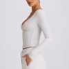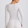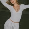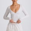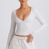 Off-duty staples done right. Endlessly versatile and designed with all-day comfort in mind, this top is crafted from buttery soft and stretchy ribbed jersey fabric made with TENCEL™ Modal fibres that support a natural dry feeling through moisture control. It’s framed with a bust-flattering wrapover V-neck, long fitted sleeves and features internal silicone tape at each shoulder for a secure fit.