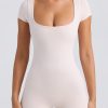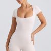 Versatile looks for low-key days. The perfect foundation for layered transitional looks, this unitard is crafted from buttery soft Seamless Rib fabric with a subtle, vintage-inspired acid wash finish. It’s designed with figure-defining contouring ribbed panels at the waist and side and framed with a classic square neck.