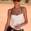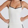 Go from serve to sunset spritz with this tank top. Doubling up as the perfect summer styling piece, it’s crafted from our breathable and buttery Soft Active fabric to a figure-hugging silhouette with adjustable cross-back straps and a statement rounded cut-out at the back. It’s framed with a universally flattering sweetheart neckline and contrast trims.