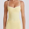 Go from serve to sunset spritz with this tank top. Doubling up as the perfect summer styling piece, it’s crafted from our breathable and buttery Soft Active fabric to a figure-hugging silhouette with adjustable cross-back straps and a statement rounded cut-out at the back. It’s framed with a universally flattering sweetheart neckline and contrast trims.