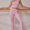 Soft girl looks. Embrace leisurely mornings with these soft and lightweight trousers, crafted from subtly sheer stretch jersey. Designed for a mid-rise fit, they feature an adjustable fold-over elasticated waistband and fall to a flared-leg silhouette.