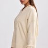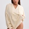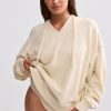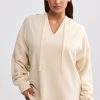 Terry Towelling V-Neck Hoodie in Cream