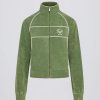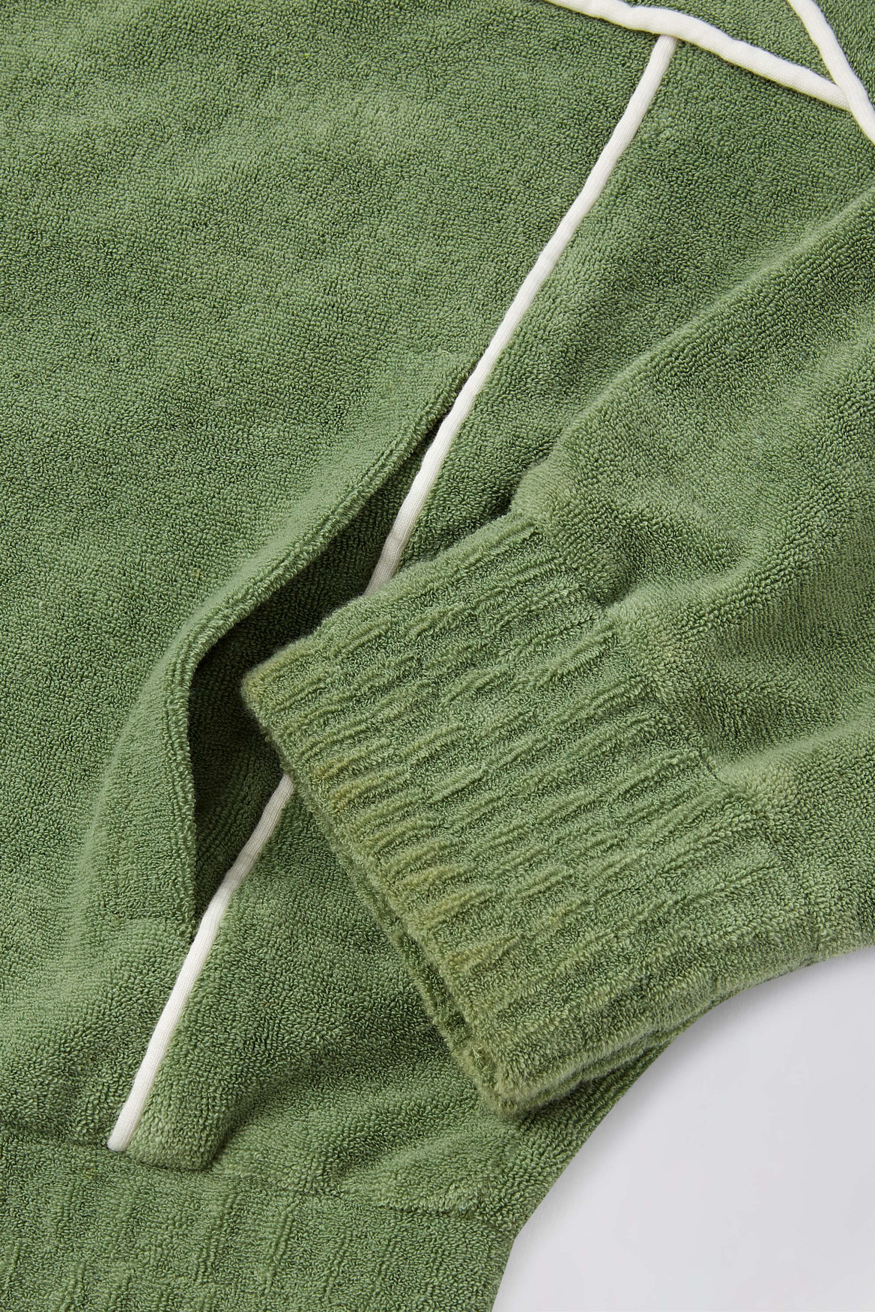 Terry Towelling Zip-Up Cropped Sweatshirt in Green