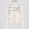 Sporty silhouettes with a luxe twist. Cut to an easygoing cropped silhouette, this cropped sweatshirt is framed with a stand-up collar and zip-through front for custom styling every time. Crafted for comfort and functionality, it features an elasticated hem and cuffs, and two side slip pockets. Ideal for layering on chilly mornings or breezy evenings, it’s crafted from breathable and lightweight terry towelling fabric, inspired by nostalgic styles.