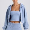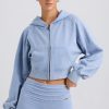Layering staples you’ll live in. Designed with maximum comfort in mind, this zip-up hoodie is crafted from super soft brushed cotton jersey. It’s cut to a cropped silhouette and the oversized shape is tempered by cuffed long sleeves and fitted ribbed waistband. It’s complete with topstitched seams and a tonal embroidered Bo&Tee logo graphic at the back.