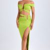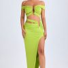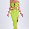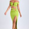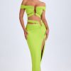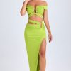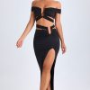 Designed to be worn on exotic escapes, the Urara maxi skirt is crafted from premium slinky jersey with a touch of stretch and a lightweight feel. Designed to coordinate with the Zene top, it features a structured U-shaped wire cut-out at the waist and cut-out straps that create a contoured, statement look. It’s complete with subtle ruching and a thigh-high front split.