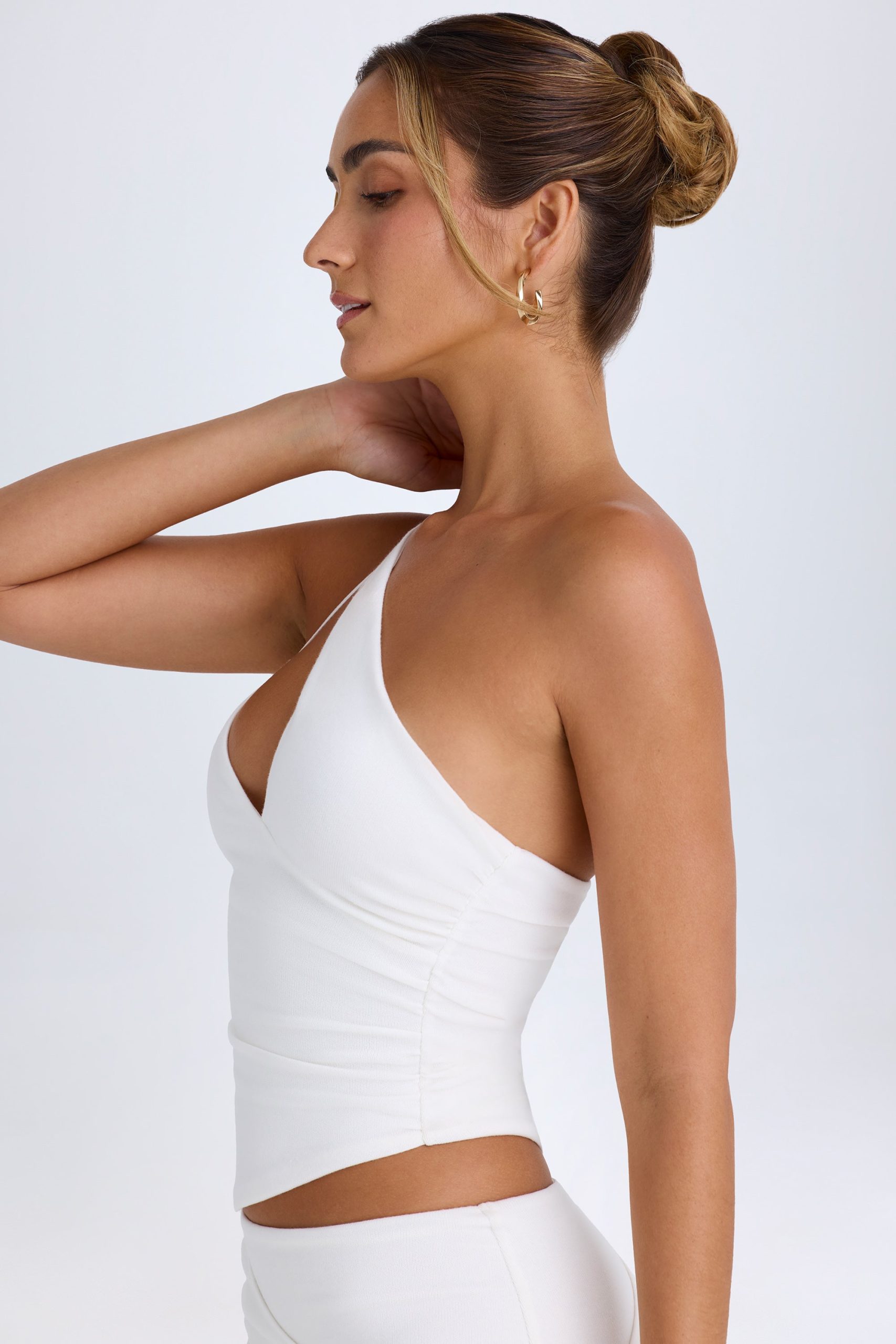 A style you’ll reach for year-round, the Hazela top is cut to a striking one-shoulder silhouette. It’s crafted from premium stretch-knit jersey with a touch of stretch and features a single adjustable shoulder strap for custom styling. It’s elevated with a cut-out neckline and asymmetric hem. Style it with the coordinating Misty skirt for evening plans.