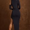 Transitional silhouettes. A new take on the classic maxi, the Blythe dress is crafted from premium, semi-sheer stretch jersey to an asymmetric off-shoulder silhouette with a single shoulder strap and thigh-high split. It’s elevated with precise ruched detailing and a crossover draped panel at the waist that defines your shape.