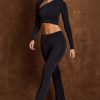 Asymmetric Draped Mid-Rise Flared Trousers in Black