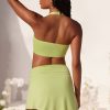 Elevated summer separates. Stand out in the Zuma mini skirt, featuring a playful asymmetric hemline, flattering ruching at the hips and statement metal hardware detailing.