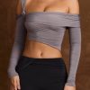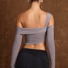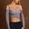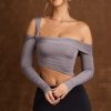 Asymmetric looks. A fresh take on classic off-shoulder silhouettes, the Carryn top is detailed with a twisted one-shoulder strap and long fitted sleeves. It’s made from our premium stretch jersey, that’s ideal for year-round wear, and elevated with all-over ruched detailing. The foldover neckline can be adjusted for your perfect fit.