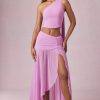 Romanticise your next event with the Romy maxi skirt. Crafted from lightweight and airy chiffon, it’s cut to an asymmetric silhouette with a thigh-high split for stunning movement with every step. Designed for a mid-rise fit, it features a precisely ruched and fully lined top panel for enhanced coverage with a single-layer skirt at the bottom.