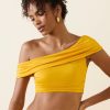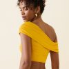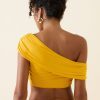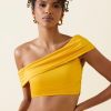 Asymmetric Ruched Off-Shoulder Crop Top in Golden Yellow