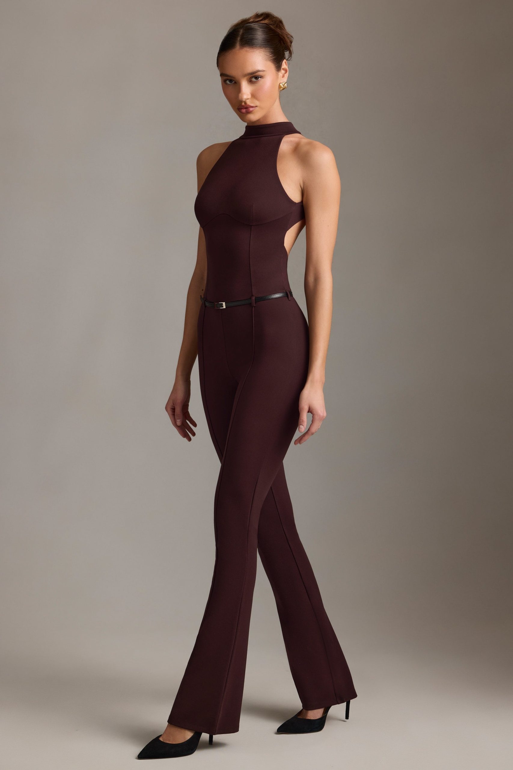 Go from day to night in the city with the Zaraida jumpsuit. Your new favourite, it’s crafted from our premium ponte fabric that’s tailored to hold its shape all day and fit like a non-restrictive second skin for the ultimate airbrushed silhouette without sacrificing comfort. Cut to a flared silhouette, the drop-waist bodice is framed with contouring princess seams, a contrasting belt and turns to reveal a statement open back.