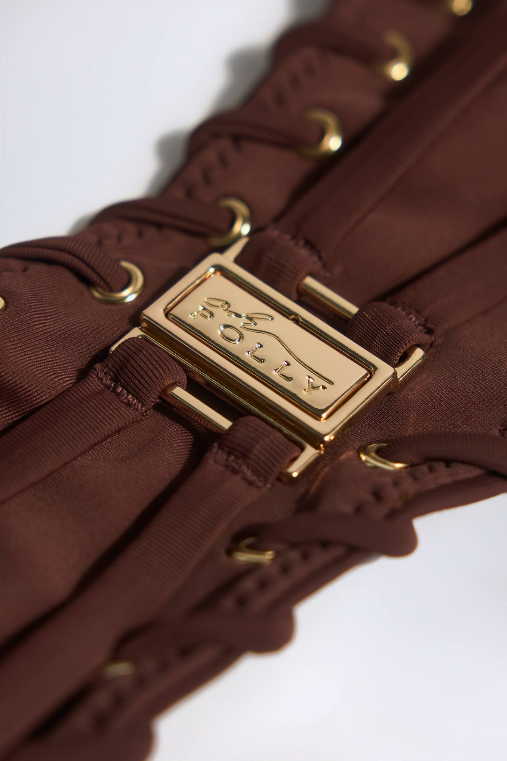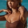 Summer trip styling, elevated. Crafted from premium stretch-swim jersey fabric, the Pasyon bikini top is designed with a bandeau neckline and unique eyelet hardware with lace-up detailing. It features slender adjustable straps for custom support and striking cut-out detailing at the back.