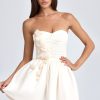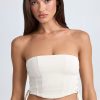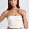 Bandeau Lace-Up Corset Crop Top in Ecru