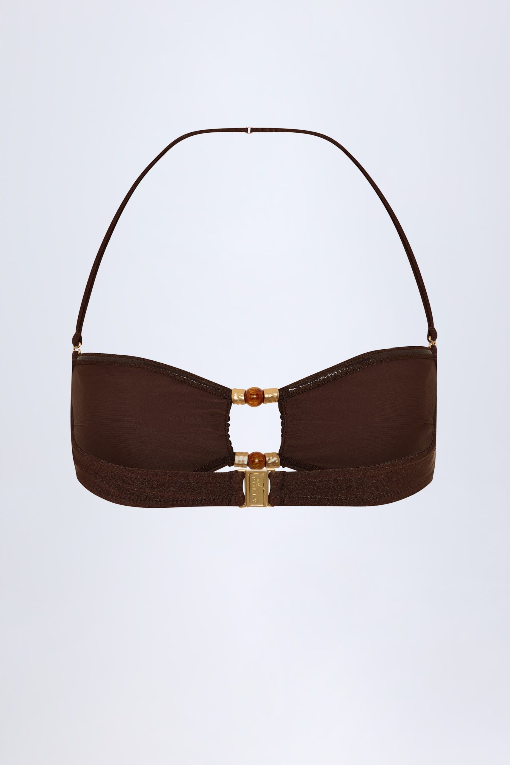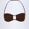 Long-haul trips and late-night dips? You’ll love the Manava bikini top. Crafted from our premium stretch-jersey swim fabric to a bandeau silhouette, it’s elevated with a rounded front cut-out secured with hammered gold-tone hardware and bead embellishments, and features internal silicone tape for enhanced support and hold.