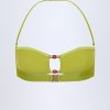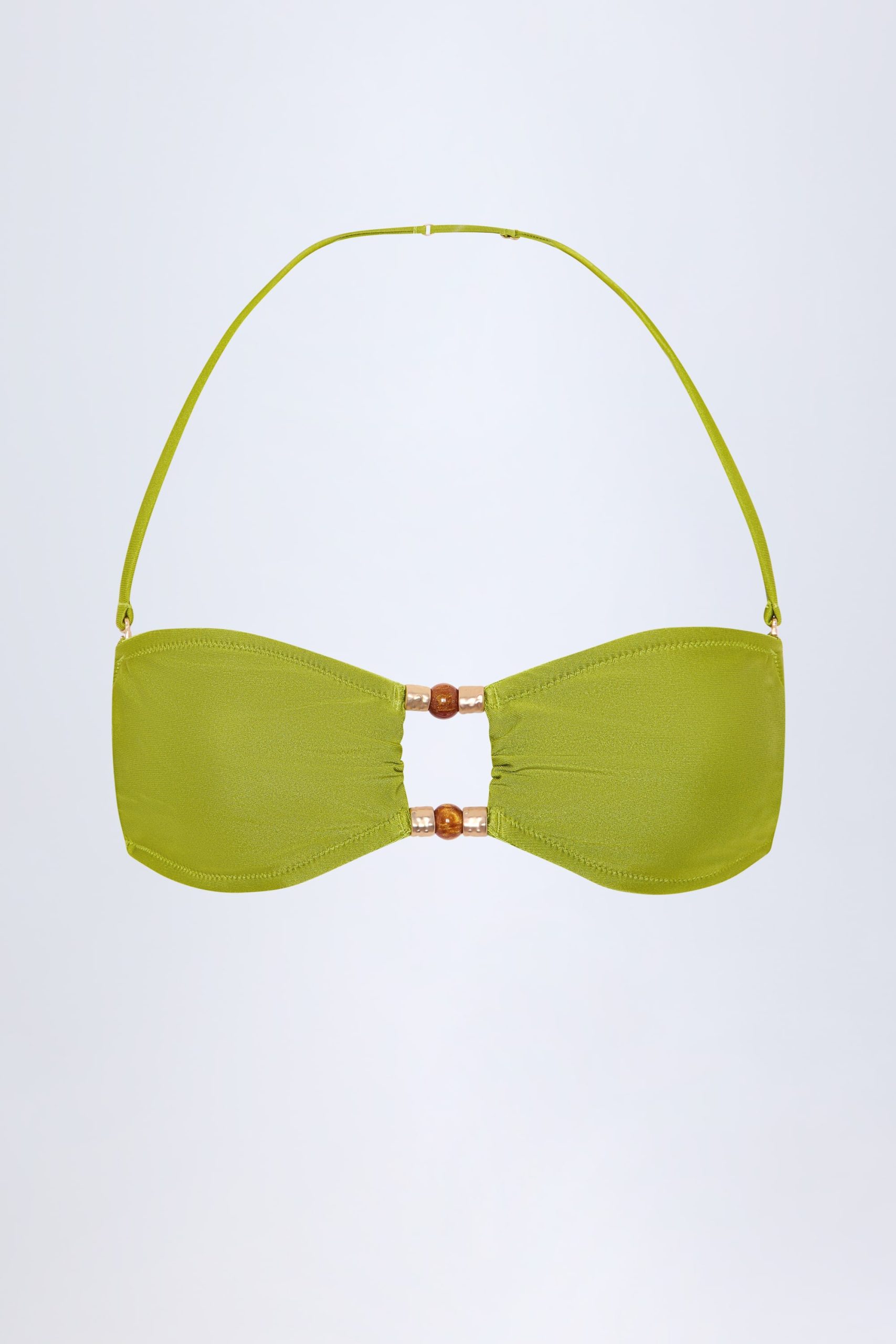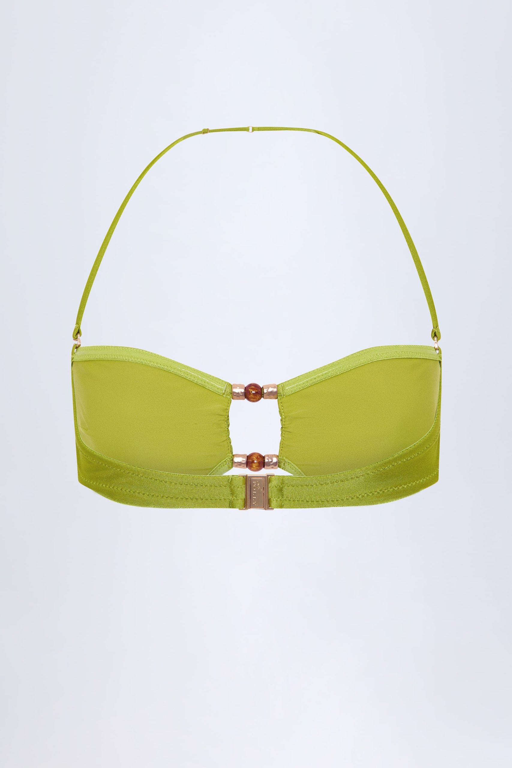 Long-haul trips and late-night dips? You’ll love the Manava bikini top. Crafted from our premium stretch-jersey swim fabric to a bandeau silhouette, it’s elevated with a rounded front cut-out secured with hammered gold-tone hardware and bead embellishments, and features internal silicone tape for enhanced support and hold.