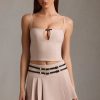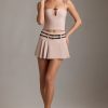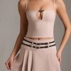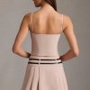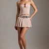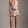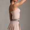 Belted Low-Rise Pleated Mini Skirt in Mushroom