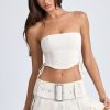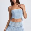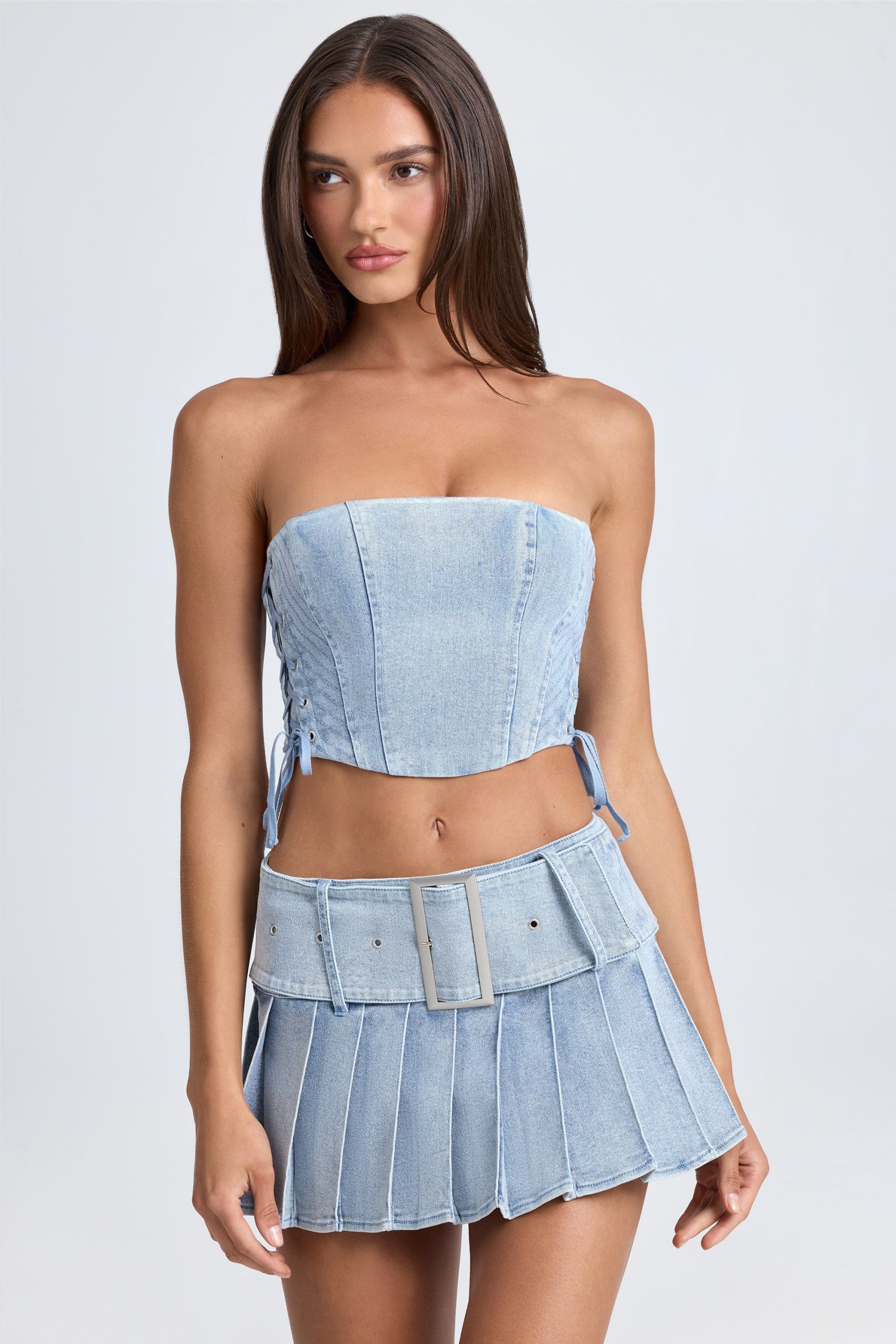 A fresh take on denim. Inspired by playful styles made popular in the nineties and noughties, the Devora skirt is crafted from premium stretch denim to a low-rise silhouette and fitted with an oversized tonal belt, complete with silver-tone metal eyelets. It’s cut to a micro mini length and elevated with dynamic pleats.