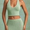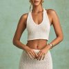 Sheer knits, sun-kissed hues. Crafted from lightly textured and subtly sheer bouclé knit fabric, the Gianna crop top is cut to a classic halterneck silhouette that can be adjusted for your perfect fit. It’s framed with a V-neckline and is designed to be styled with the coordinating maxi skirt.