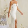 A glamorous design created by our team of in house ateliers, the Flavia maxi dress is a captivating style perfect for commanding attention. Made from our deluxe satin fabrication, the Flavia mini dress is an open back design with supportive underwired cups that provide enhanced elevation. A slim fitting bodice cascades into a flattering fishtail hemline whilst the maxi skirt is complete with a seductive thigh high split that adds a sensual element to this vintage runway inspired maxi dress.