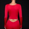 Striking contrasts. An illusionary design crafted for maximum impact, the Lilith top is made from premium, high-shine stretch jersey to a figure-hugging silhouette. Framed with fitted long sleeves, it features moulded cups with darts, cut-out detailing at the front, and a shaped sweetheart neckline.