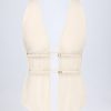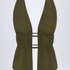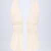 Cut-Out Semi-Sheer Ruched Halterneck Crop Top in Ivory